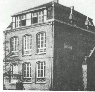 | Die erste Schule in Erle war ein Nebengebäude, das an den Turm der